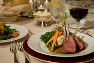 Neste estilo, os pratos, copos e talheres são dispostos nas mesas dos convidados. As bebidas, coquetéis, canapés, salgadinhos e sobremesa são servidos à mesa, enquanto que a Ementa de frios, o Menu Principal, e a Saída são servidos em aparadores.